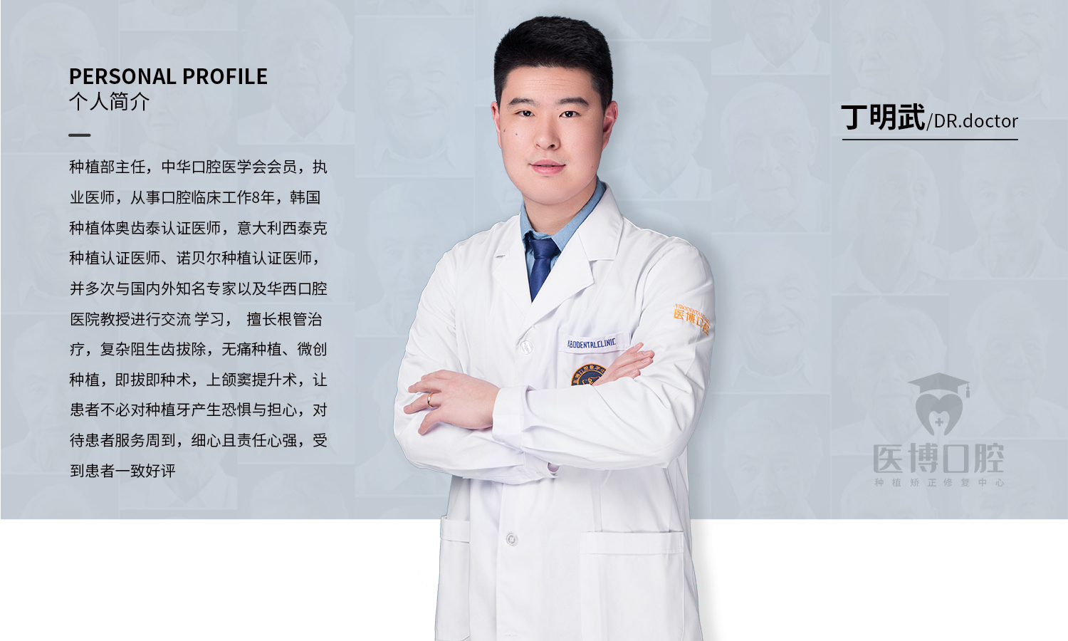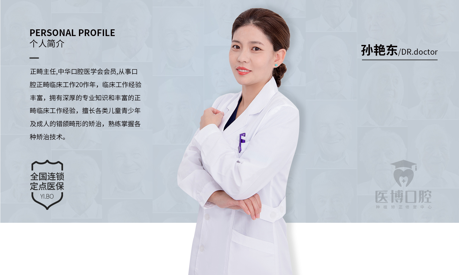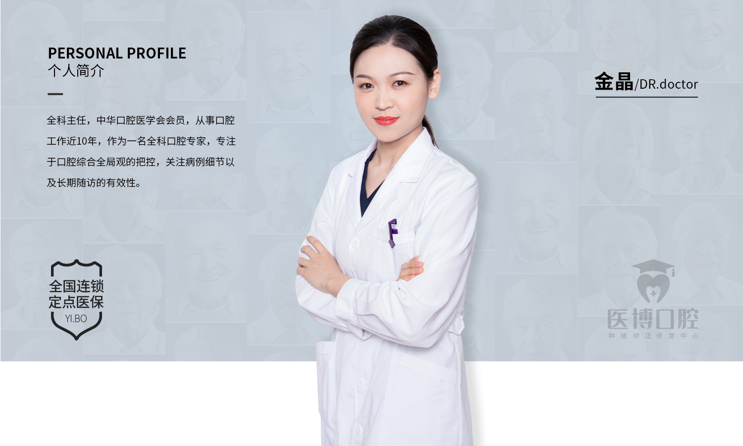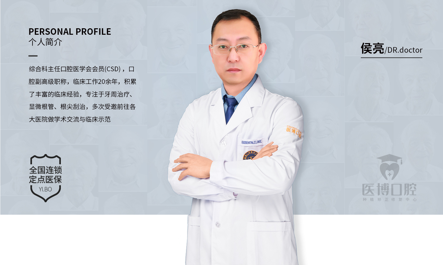 医博口腔连锁于2004年成立于天津。由原中国人民解放军西部战区总医院口腔科主任联合北京、天津三甲医院专家骨干组成,从事口腔诊疗服务17年,现已发展全国多家连锁机构。医博口腔秉持“医德仁心、博专精深”的经营理念,坚持以品牌为导向,创新优质的服务理念,严谨规范的职业行为,专注于为客户提供集齿科疾病预防、诊疗、健康和保健四位一体化的,高层次全方位、专业、安全的口腔诊疗服务。